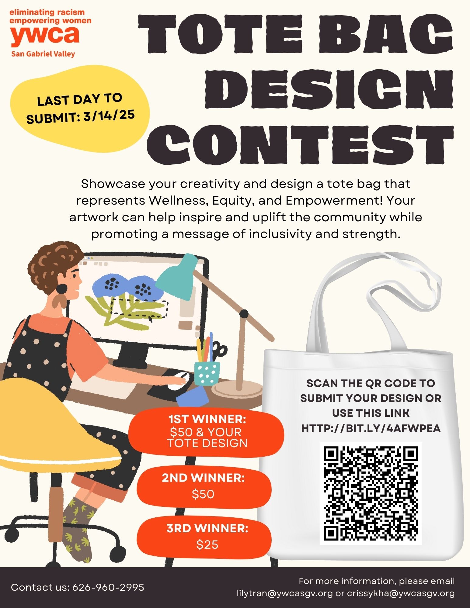 Calling all creatives in the San Gabriel Valley! YWCA-SGV is hosting a Tote Bag Design Contest with the theme: San Gabriel Valley Wellness, Equity, and Empowerment. The winning design will be featured on our next order of tote bags!